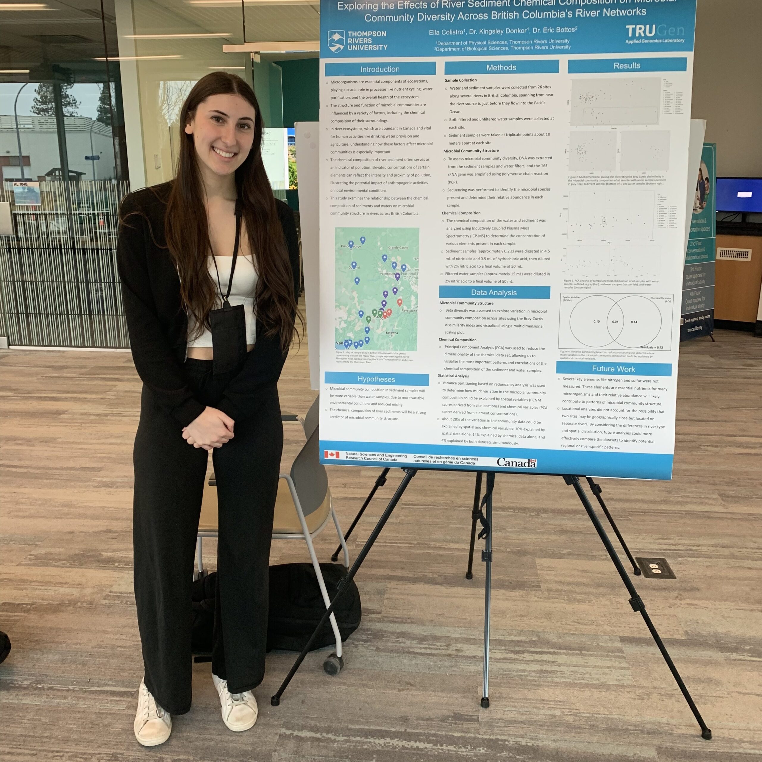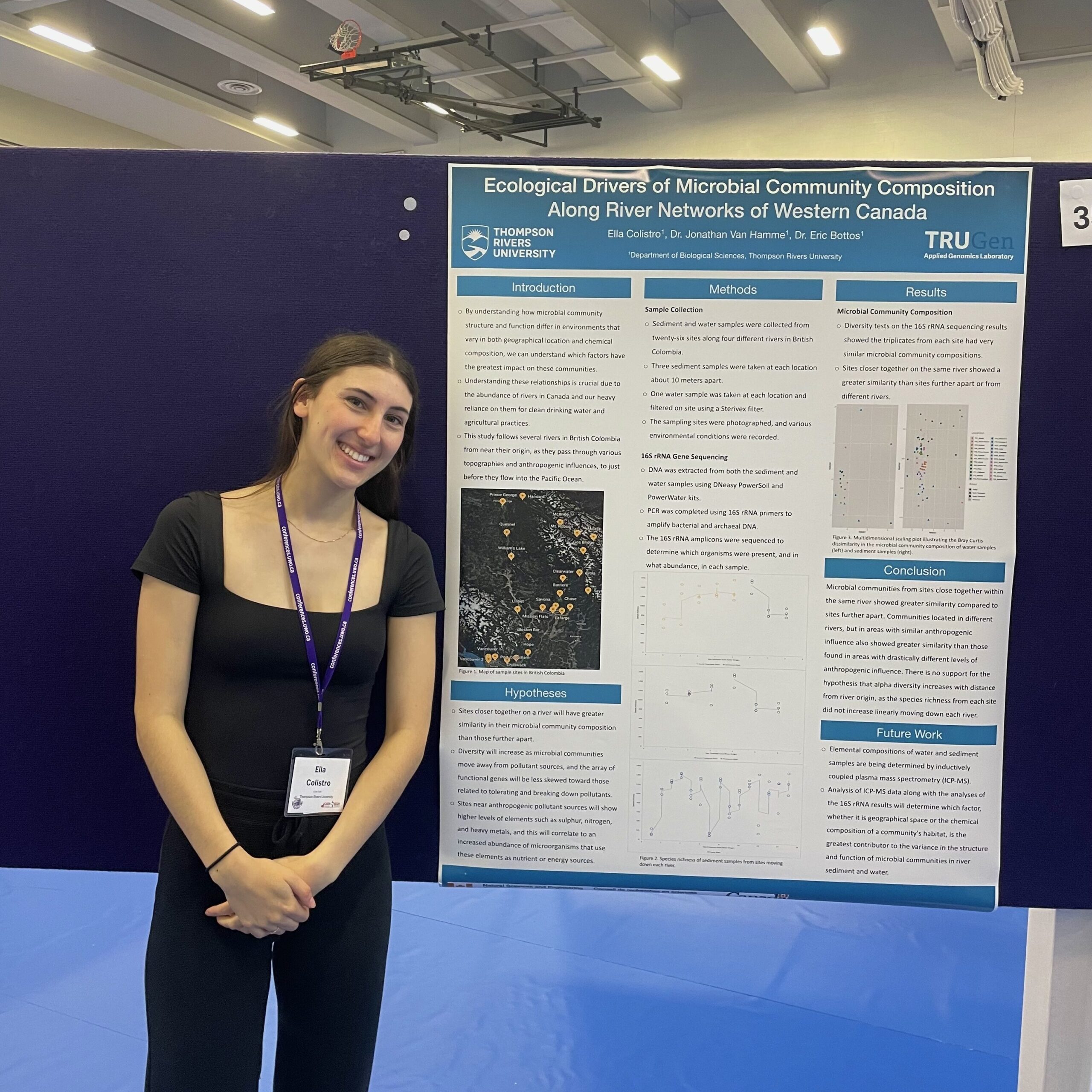 I presented a poster titled “Exploring the Effects of River Sediment Chemical Composition on Microbial Community Diversity Across British Columbia’s River Networks” at the TRU Undergraduate Research and Innovation Conference. This event strengthened my ability to communicate research to both peers and faculty across various disciplines.